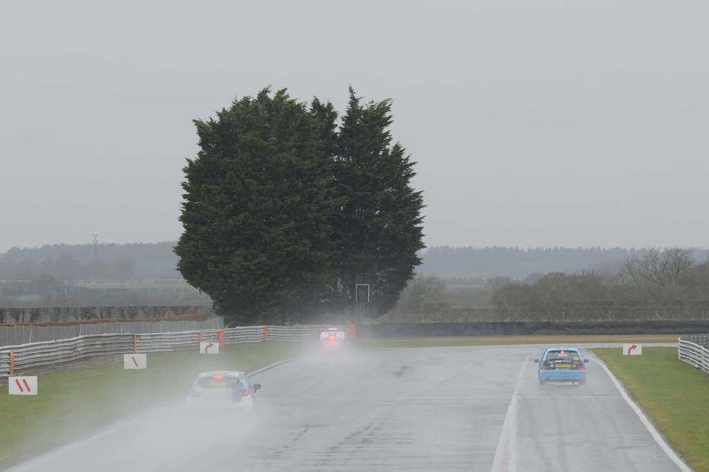 At the start of the day, it’s cold and wet. These are the worst conditions I’ve seen for a while with standing water over most of the circuit.