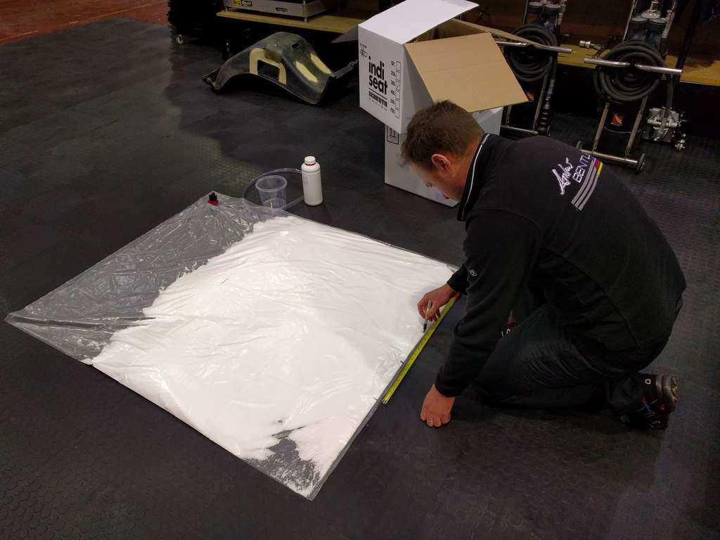 Anyone who’s worked on race cars will know that preparation is hugely important. This is obviously no different. I measure the seat to make sure the bag is the correct size and it is suitable for the application.