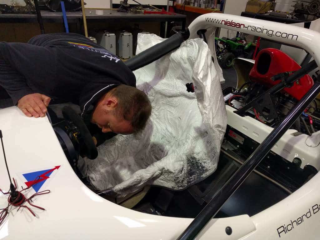The driver should be in his full kit, boots and all. This means you’ll be building a seat exactly as they will be driving the car.
