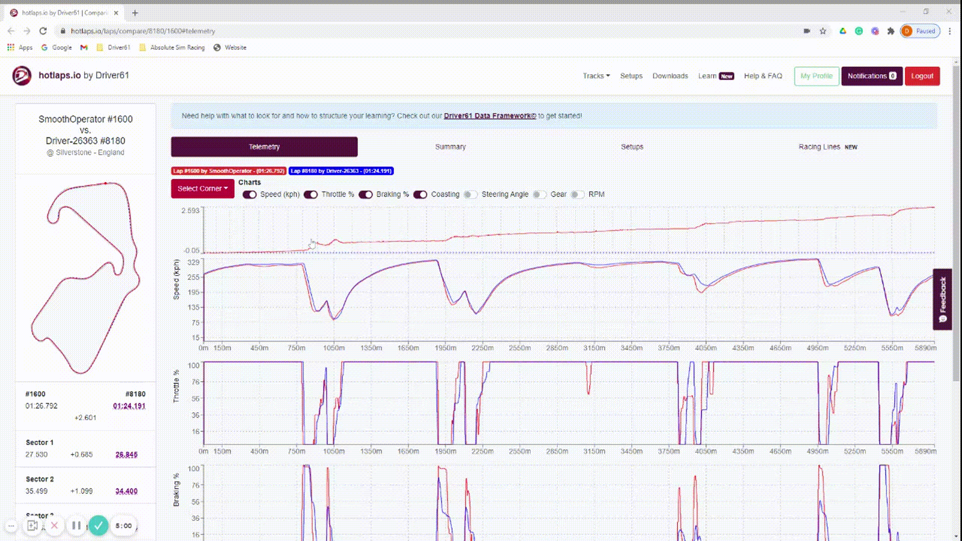 Your subscription includes the Driver61 Data Pack with a new lap being released every week. You can also compare with any community lap.