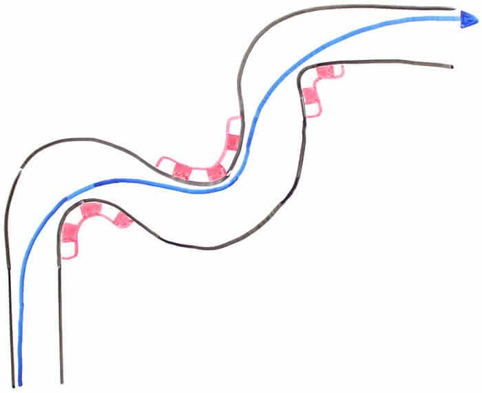 With this type of corner, the opportunity for gaining time is all on corner entry, as well as the exit of the second corner depending on the length of straight that follows. To keep things simple, we’ll ignore the second corner for the moment.